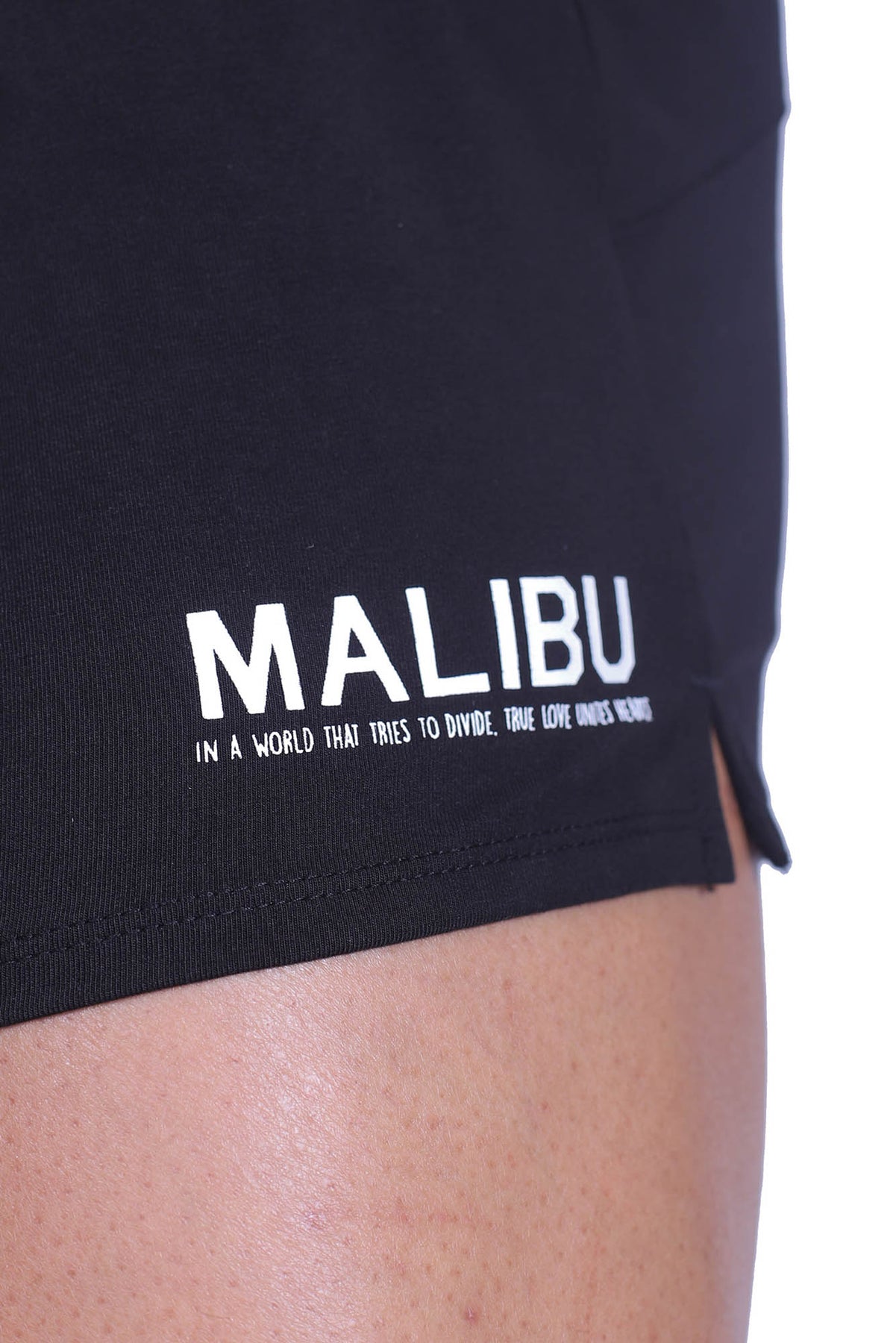 • Graphic print logo on left side: "Malibu: In a world that tries to divide. True love unites hearts."